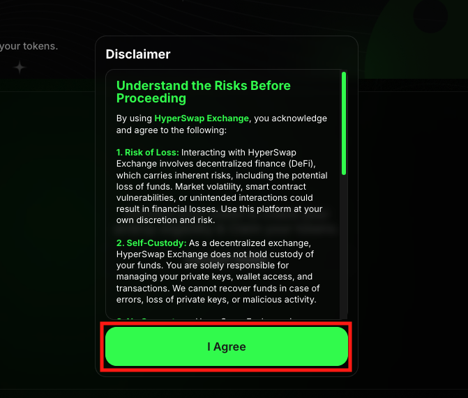 HyperswapにアクセスしてI Agreeをクリックしてください。