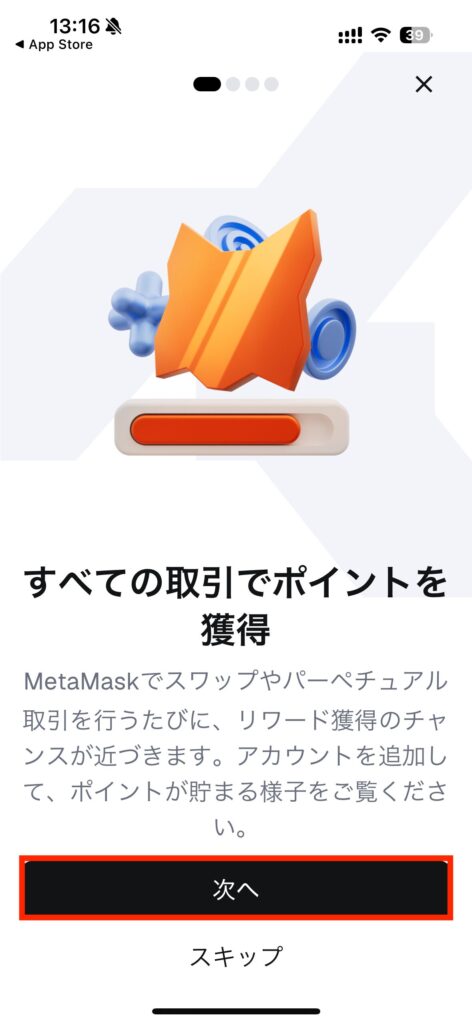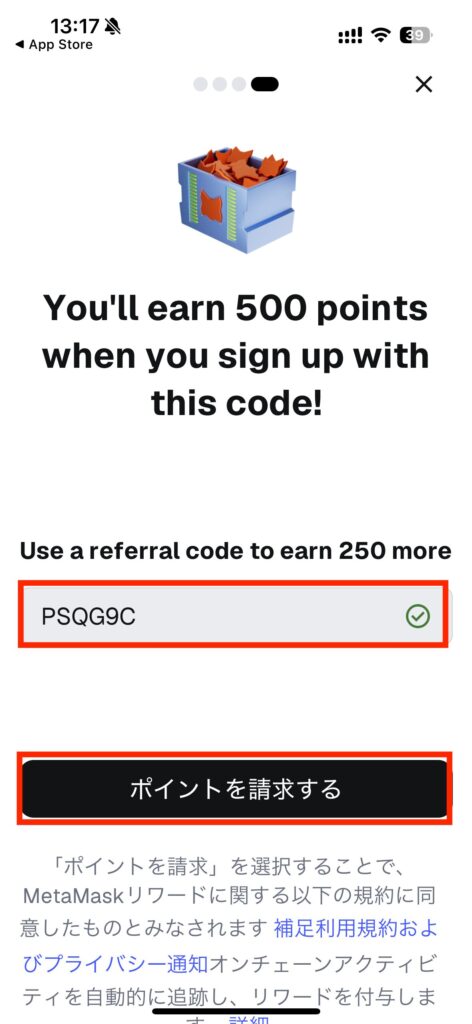 このプログラムはスマホアプリのみで参加できるのでスマホのMetaMaskアプリを最新バージョンにアップデートしてから行ってください。