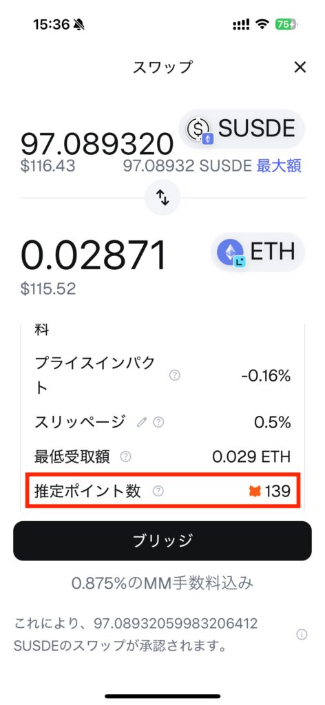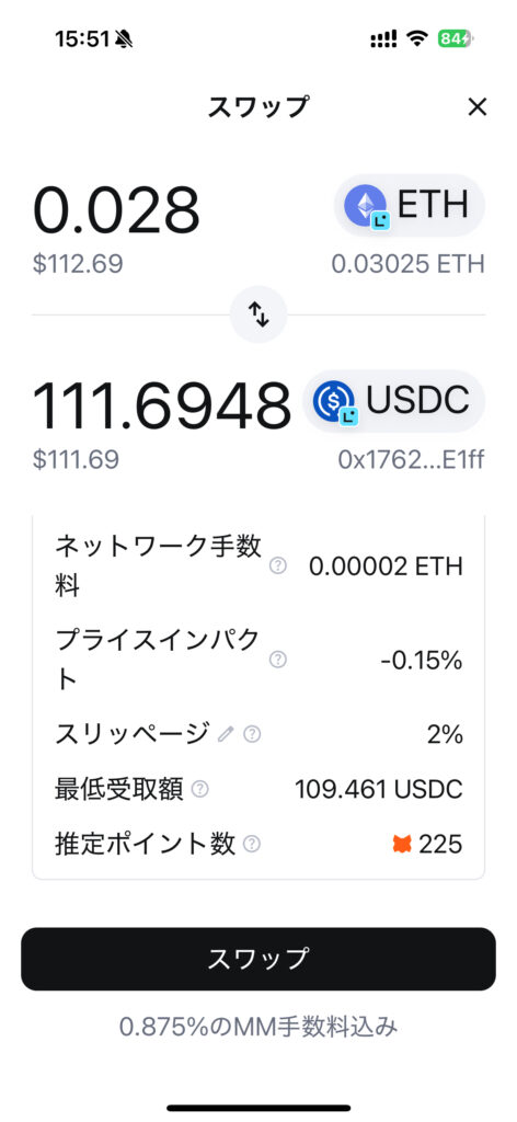Lineaチェーン内だとさらにポイントが高いのでLineチェーン内でのスワップがお勧めです。