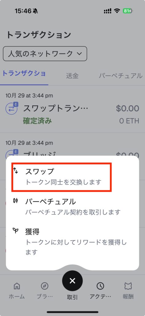 注意点としては手数料が高いので資金がどんどん削れていきますのでご自身の予算に合わせてスワップを行ってみてください。