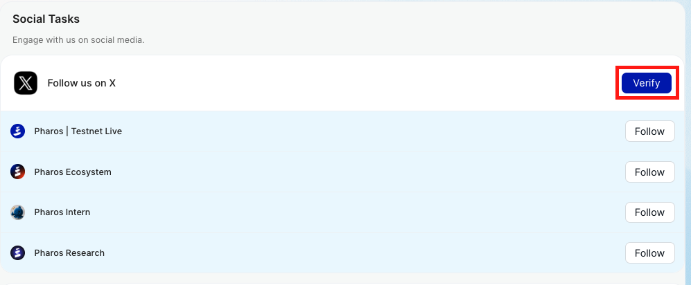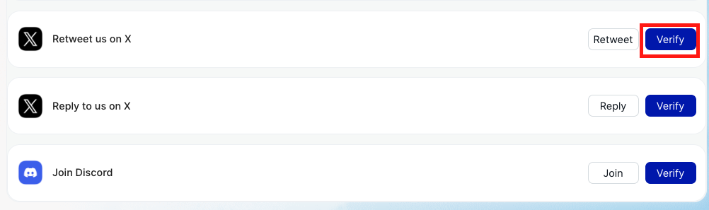 フォローが完了したら、それぞれのタスクの横にある「Verify」ボタンをクリックします。