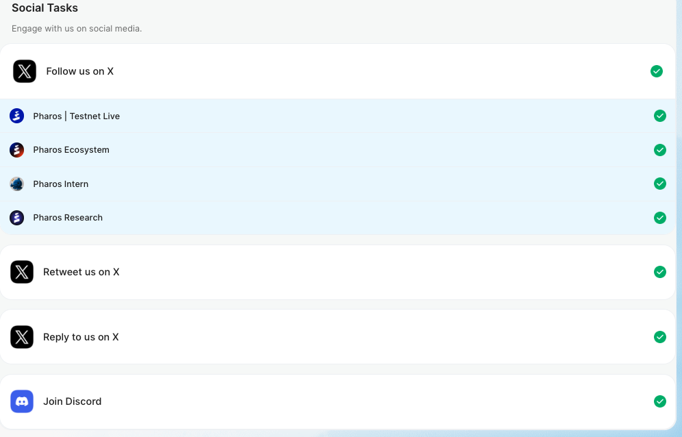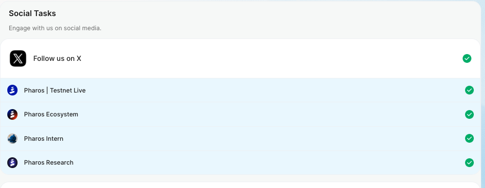 今日は、Pharosテストネットの参加方法から、ウォレット接続、テストネットトークンのクレーム、デイリーチェックイン、ソーシャルタスク、そしてオンチェーンタスクまで、主要なステップを一緒に踏破してきました。