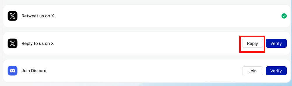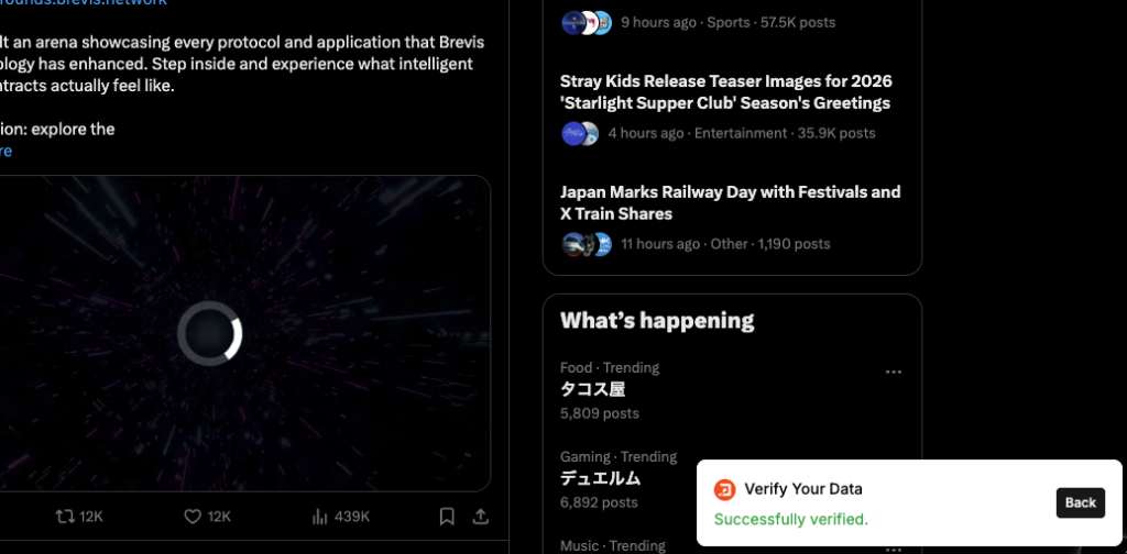 Xの投稿にコメントを書いて返信し、こちらも「Verify」で完了です。