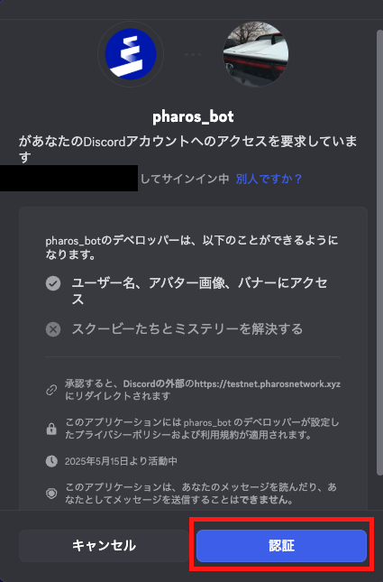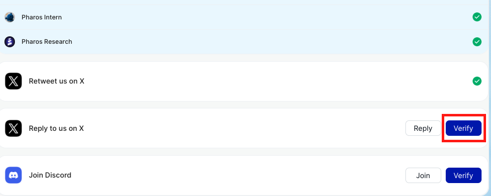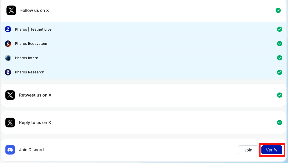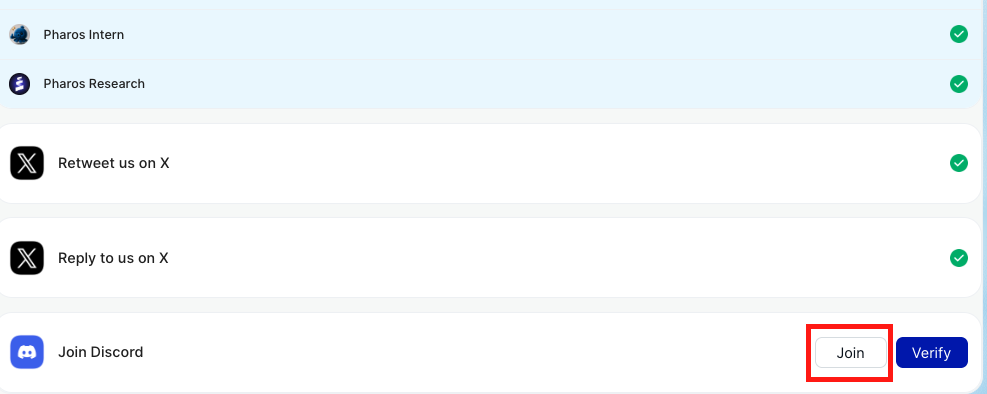 「Join」をクリックしてPharosのDiscordサーバーに参加し、サーバー内で認証を済ませたら、元のページで「Verify」をクリック。