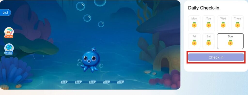 文字通り、毎日この「チェックイン」ボタンをポチッとクリックするだけです。こ