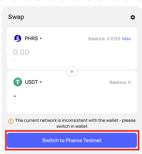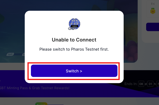 Switch to Pharos Testnetをクリックしてウォレットでネットワークを切り替えてください。
