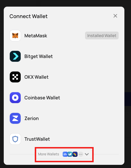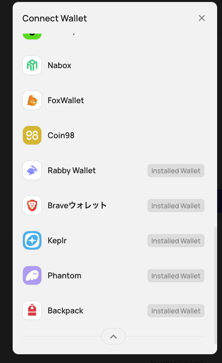 ラビーウォレットなどはMore Walletsをクリックすると選択できます。