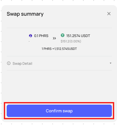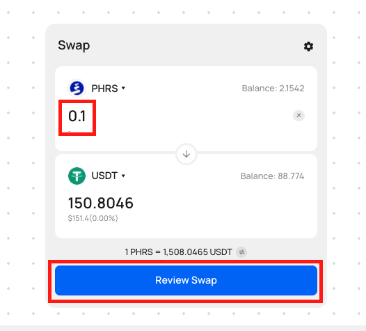 今度は反対にUSDTをPHRSにスワップする、そしてまたPHRSをUSDTへと交互にひたすら繰り返すだけです。