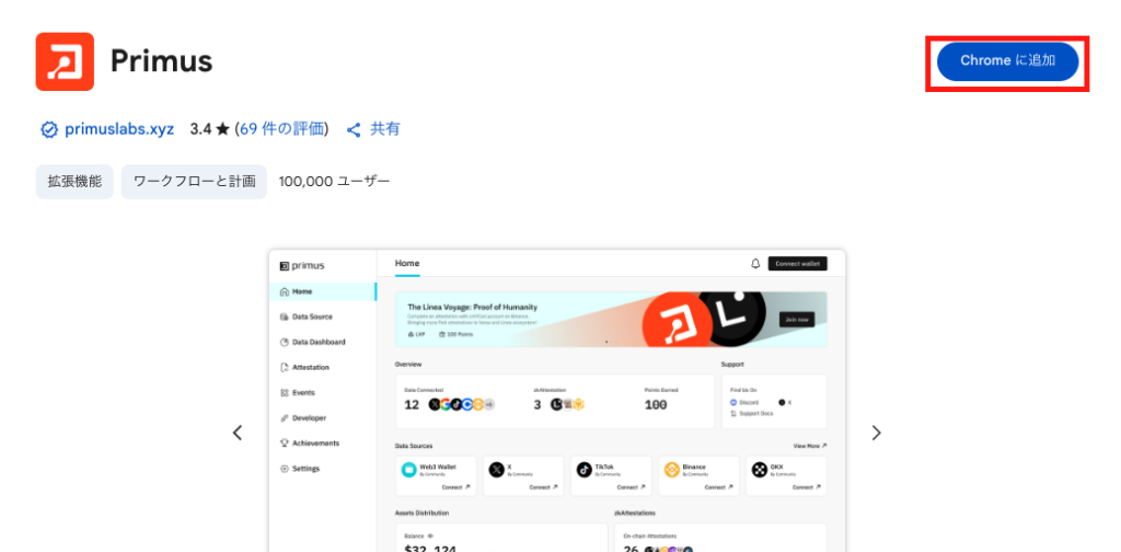 拡張機能の追加が必要なので、Add to chromeをクリックしてください。