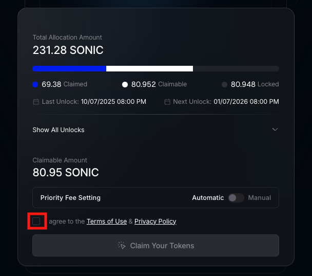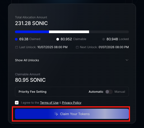Claim Your Tokensをクリックしてウォレットで承認してください。