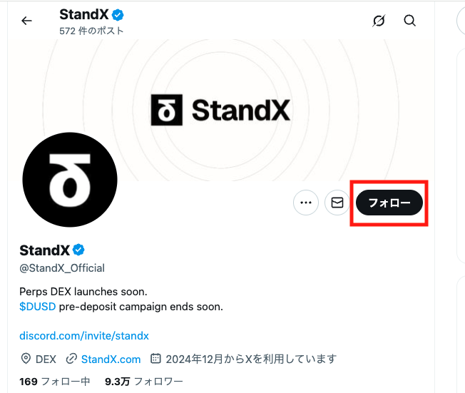 先着順でStandXコミュニティIDが取得できますので取得方法を解説します。